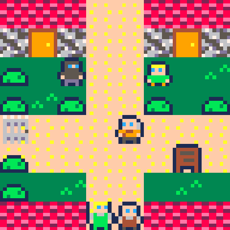 Loveeee how this one progresses! I love the map designs aand how the NPCs feel like people! The middle map/town design I LOVE the most as it reminds me of just people going about their day!