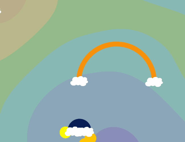 Thanks for playing! Did you make it to the end? :) Bounced rainbows destroy each other and it helps you sometimes but can also destroy the ones you want so its a little bit tricky ;p