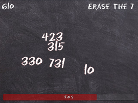 You have arithmophobia and you must collect the good numbers 1, 2, 3, 5, 6, 7, 8 Avoid collecting the bad numbers. 0, 13, 666, 39, 4, 9, 17, 39 Controls: A and D 7 gives you an extra 100 points. Streak of good numbers gives you 200 points...
