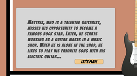 Mattris, who is a talented guitarist, misses his opportunity to become a famous rock star. Later, he starts working as a guitar maker in a music shop. When he is alone in the shop, he likes to play his favorite song with his electric guitar...