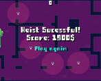 Awesome game, loved the small detail like the music speeding up for the final countdown. Pixel art cover for the game is great, very rewarding to get the large green gem past all the guards!