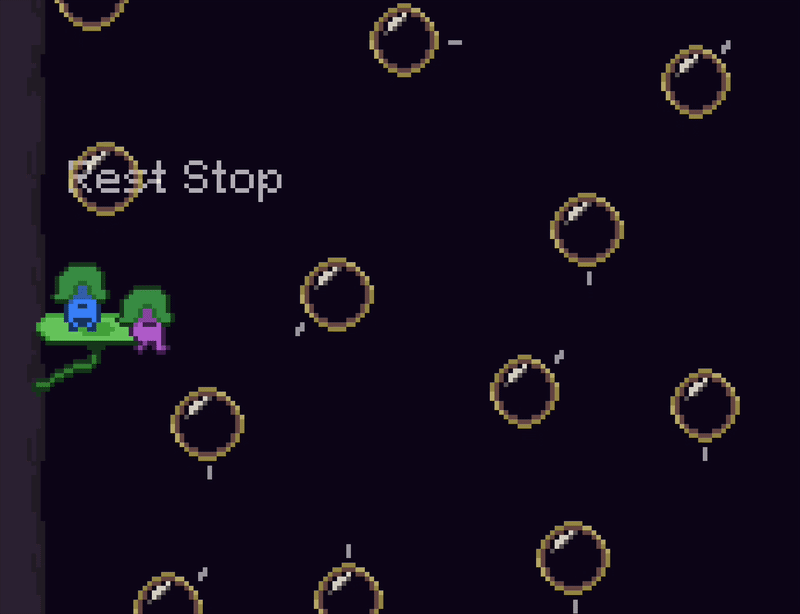 Thanks! Yes, the moving bubbles are definitely stolen from Celeste. I thought it might be fun to have them set to random directions and you have to kind of plan a path through them on the fly.