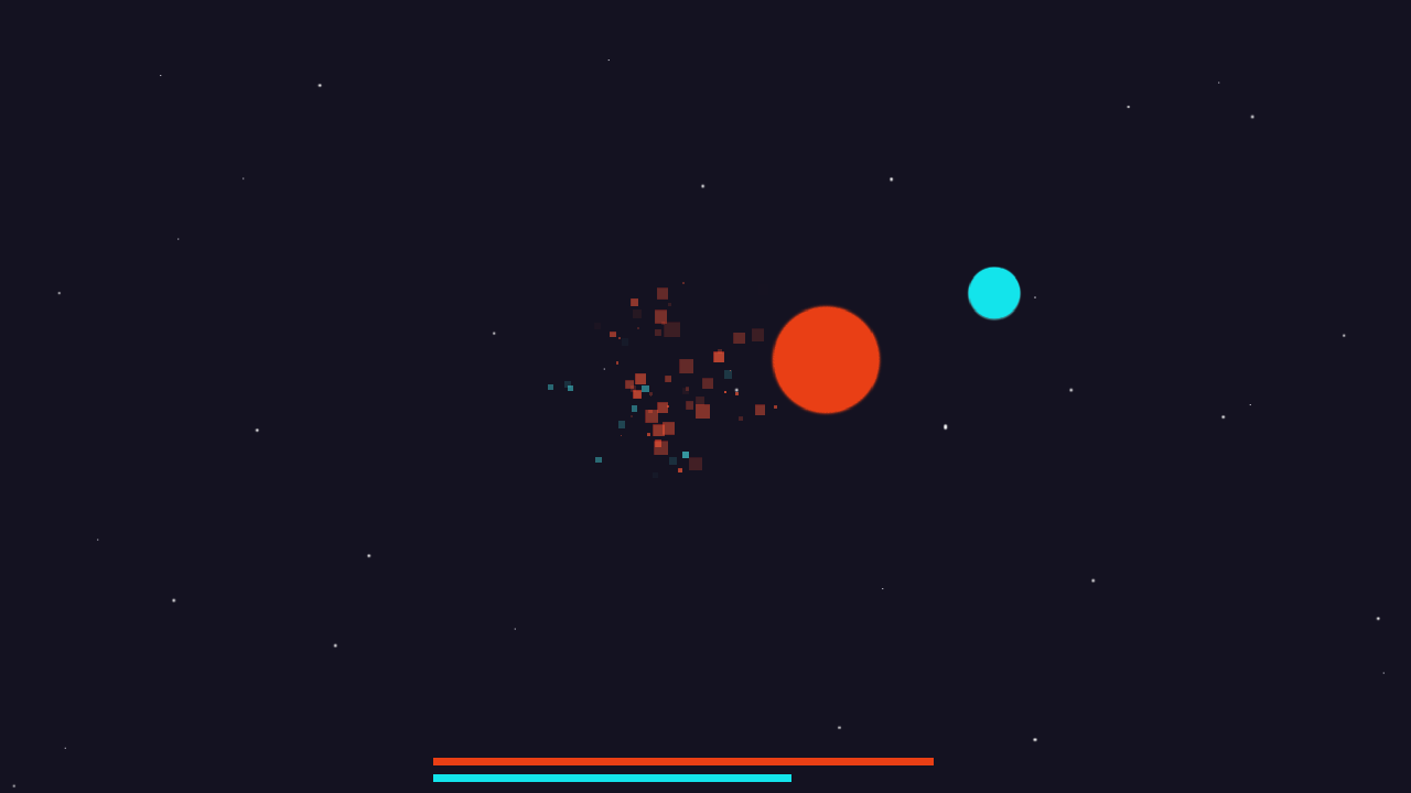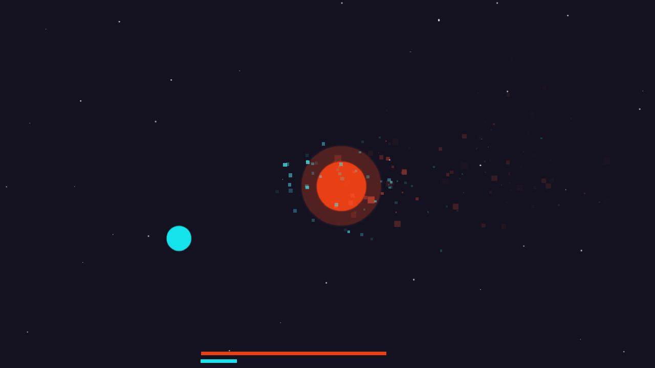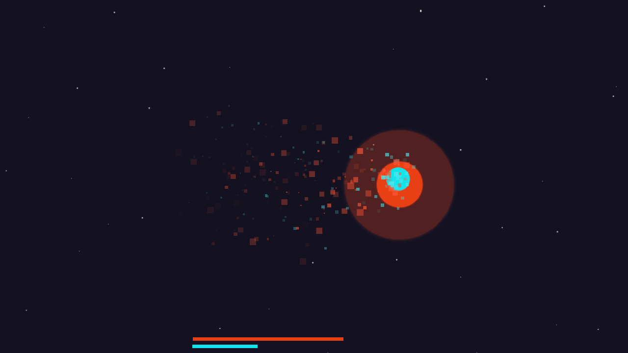 I tried for a while but never seemed to deal more damage than I took. It seems like the enemy's damage is always "on" while mine does not work as described - it feels like it's only active for a frame so I have to be *very* precise with my timing to dealt any damage at all without getting hit (i.e. flying right beside the enemy and pressing spacebar exactly when next to them). The sounds and particle effects etc are nice, and the enemy behavior is pretty compelling, it just feels impossible to play the game as intended.