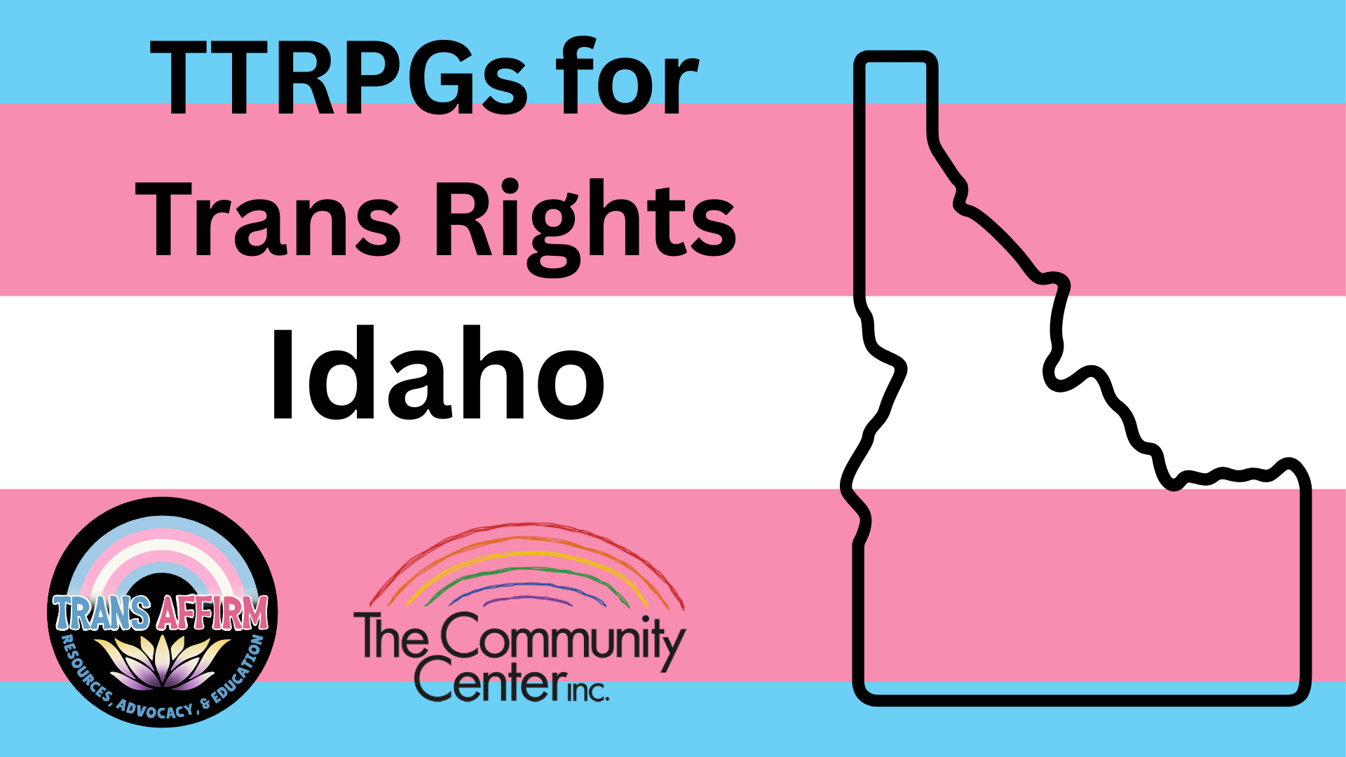 Games submitted to this jam will be collected into a charity bundle benefiting two LGBTQ+ focused organizations in Idaho: Trans Affirm Inc. and The Community Center in Boise.