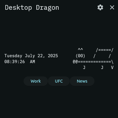 - I love the idea of a some sort of draggable desktop dragon :) Eventually with a bit more details it could become a real thing! Eventually as a menu item in the gnome top panel? Thanks for you app!