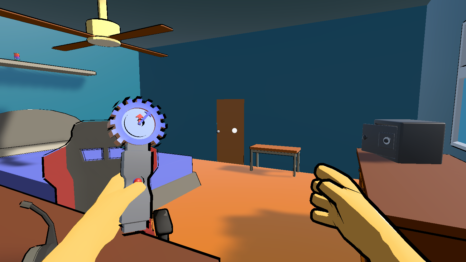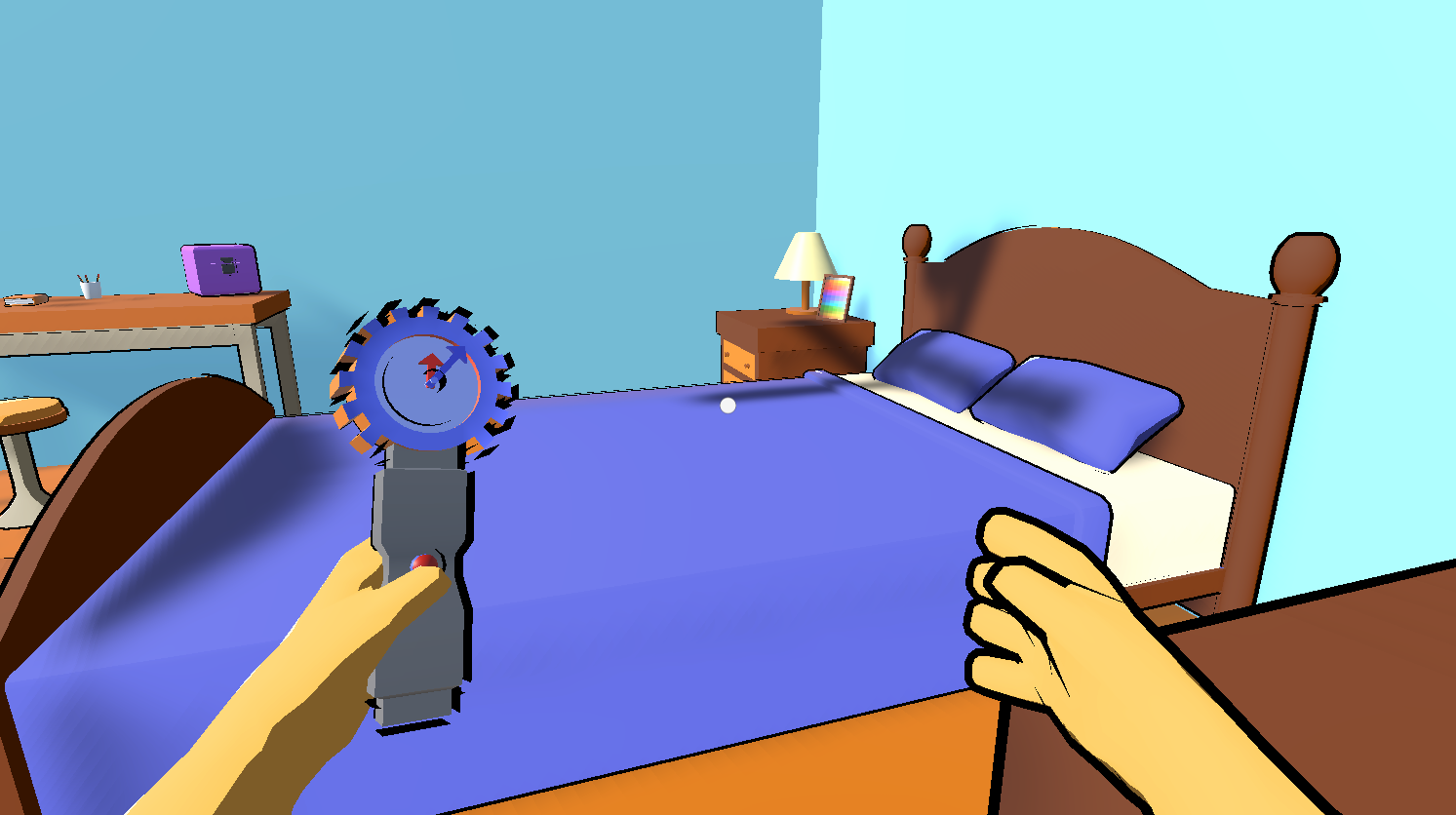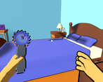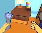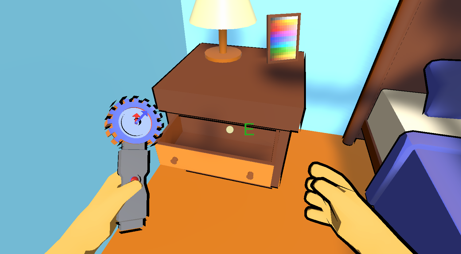Simple and intuitive enough for a non-gamer to play and actually finish and have fun. I like the time dimension of it--past and future. I could never get the right-click to drag-and-drop anything, though; just the E key to pick up and drop. In one of the times (don't know if it's past or future or present), the bed and the bookshelf are pink, like there's some problem with the material. Aren't the bed in both times using the same material?