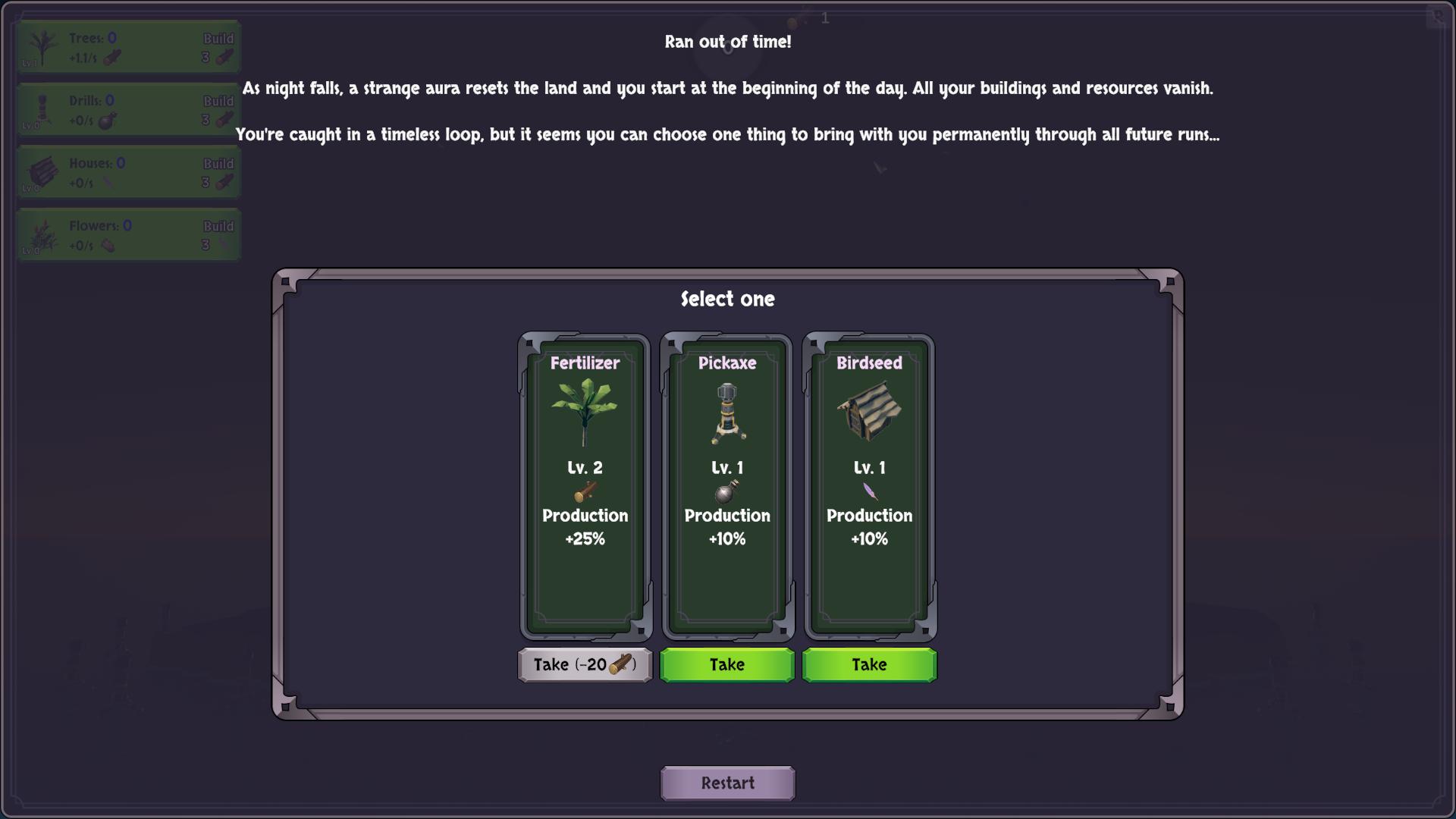 Ooo I really enjoyed this one!! I liked everything from the theme to the art, sound and mechanics!! I think it's very polished and I would have loved to have been able to continue the game from where I left off haha. Overall, really great job, congrats on making this!!