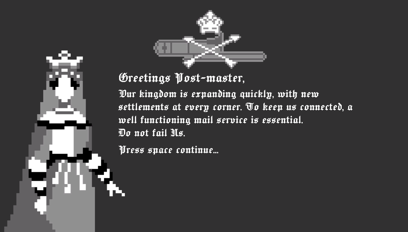 I think that's a great concept - like a Mail Tycoon type of game :) I can definitely see potential in this, maybe expand with audio and more features like robbery and police, packages, etc. Well done!