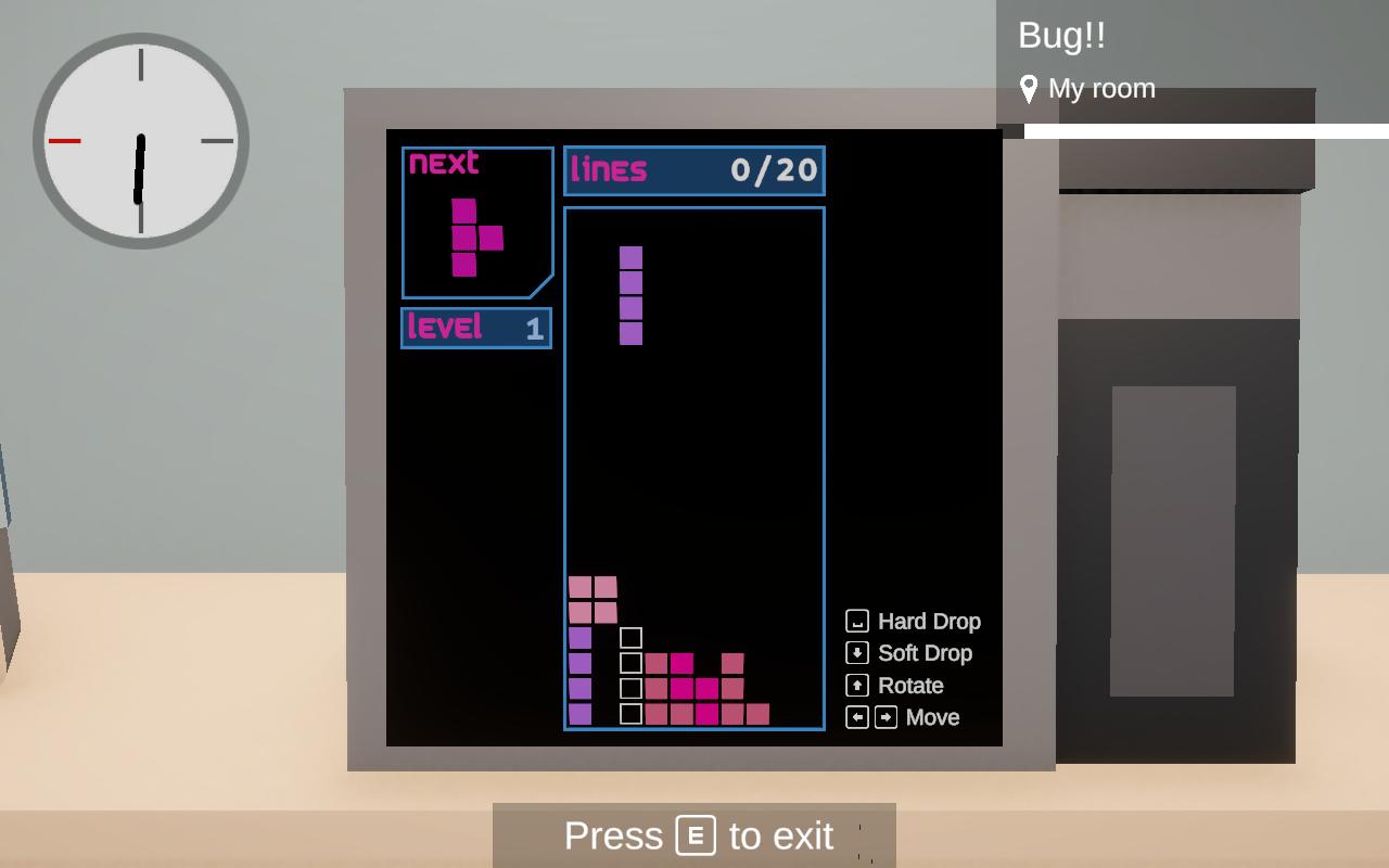 This is actually one of the coolest implementations of Tetris I've ever seen. I enjoyed this a lot man. Keeping the game running too while you're getting rid of the bugs really keeps you on edge. Loved it!