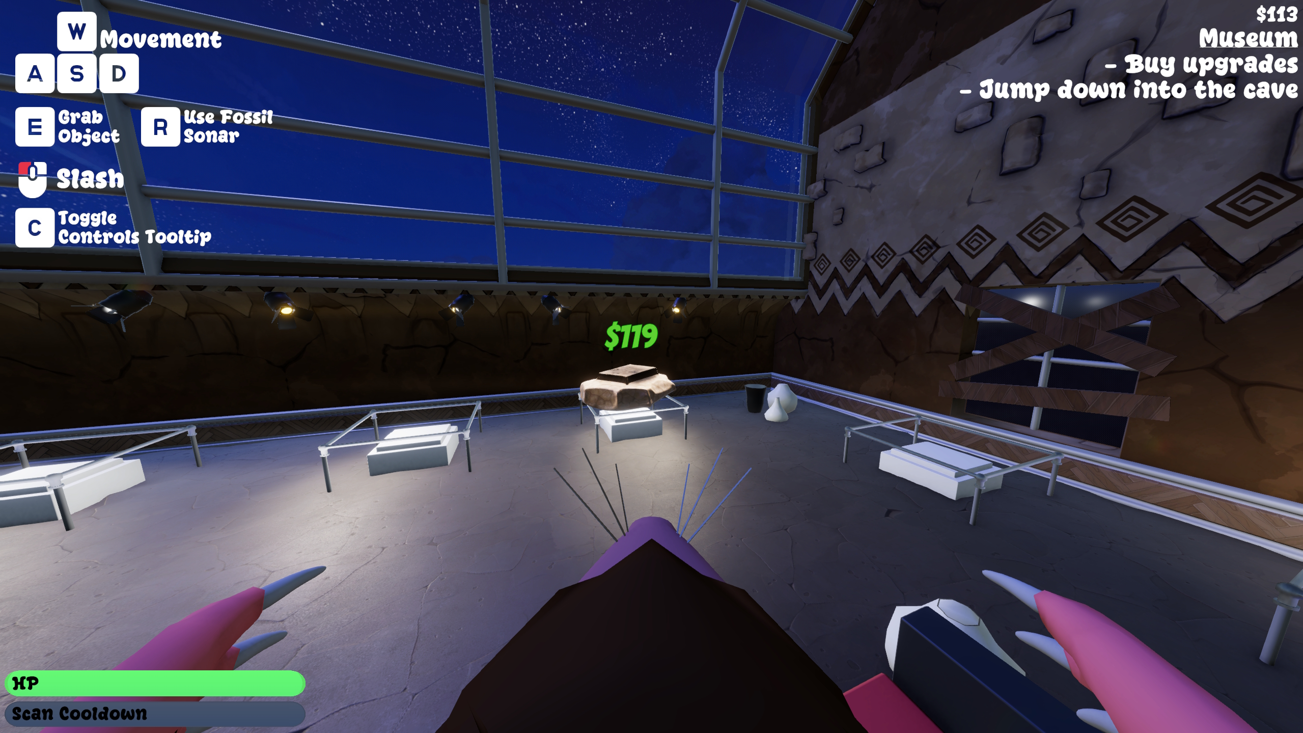 We believe we integrate the theme of timelessness in three ways: First, through collections of fossils, which are essentially frozen in time. The items within these collections—such as Tamagotchis, VHS tapes, and old Unity assets—are timeless due to their cultural associations and the nostalgia they evoke. Second, by placing these fossils in a museum, we can preserve them from the passage of time.