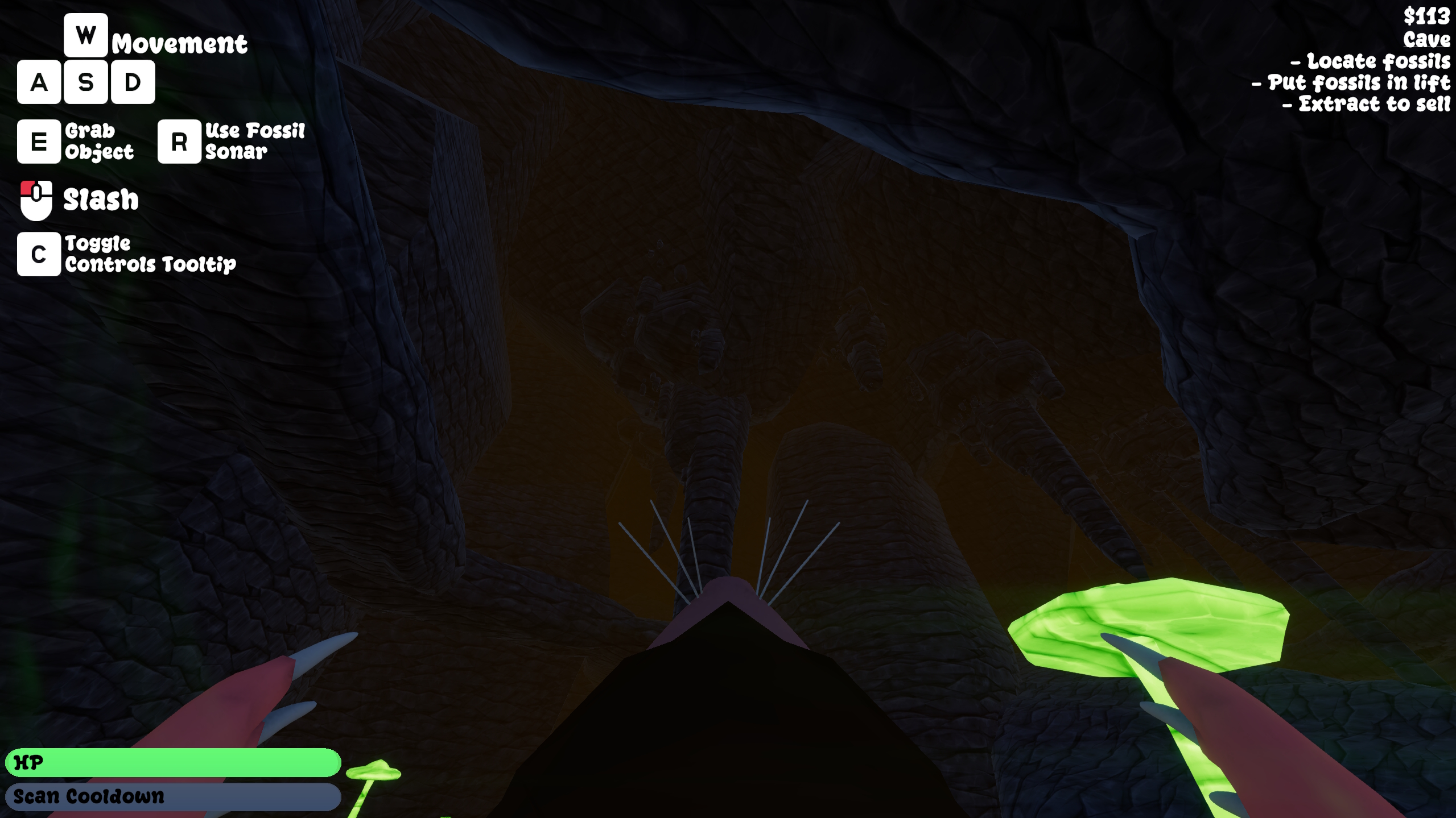 I love the nose wiggle! It made me laugh! I am terrible at this type of games so I haven't managed to deliver any fossils haha - I died on the way to the lift each time! Still I think it is a nice entry and very cool idea!