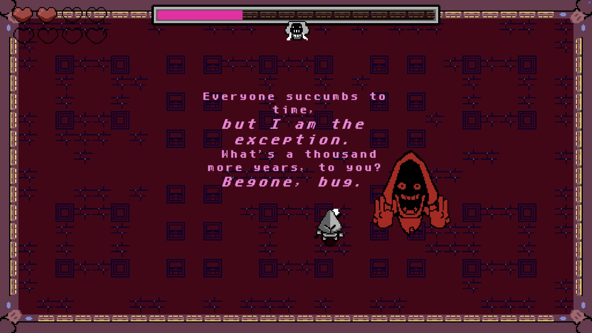 It feels a bit like Zelda on the NES and I love the twist that you can deflect arrows. It is a good gameplay mechanic.