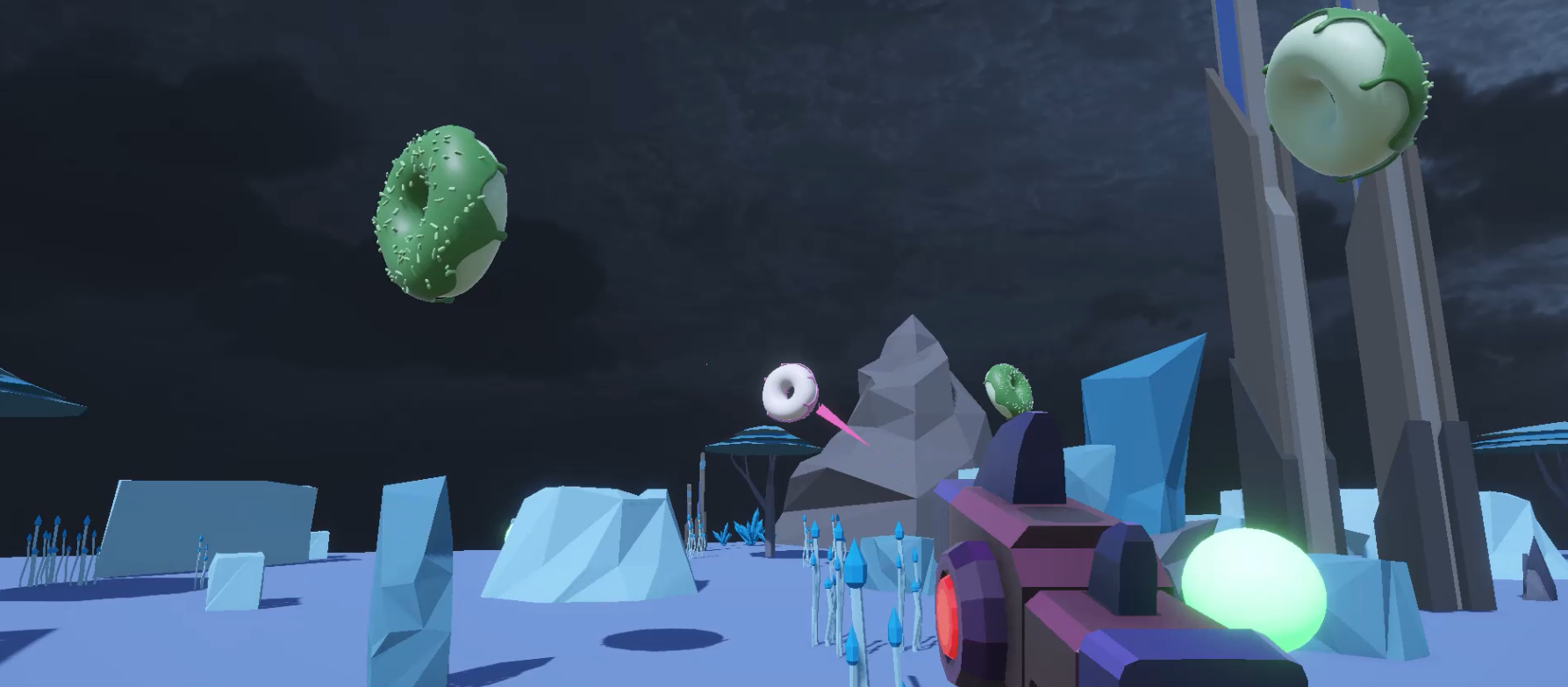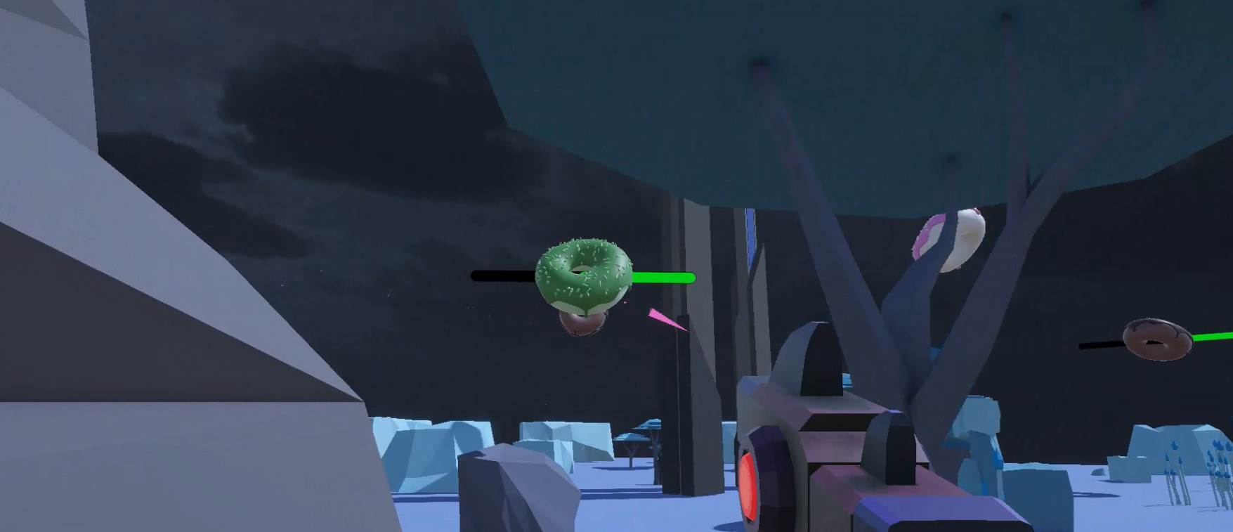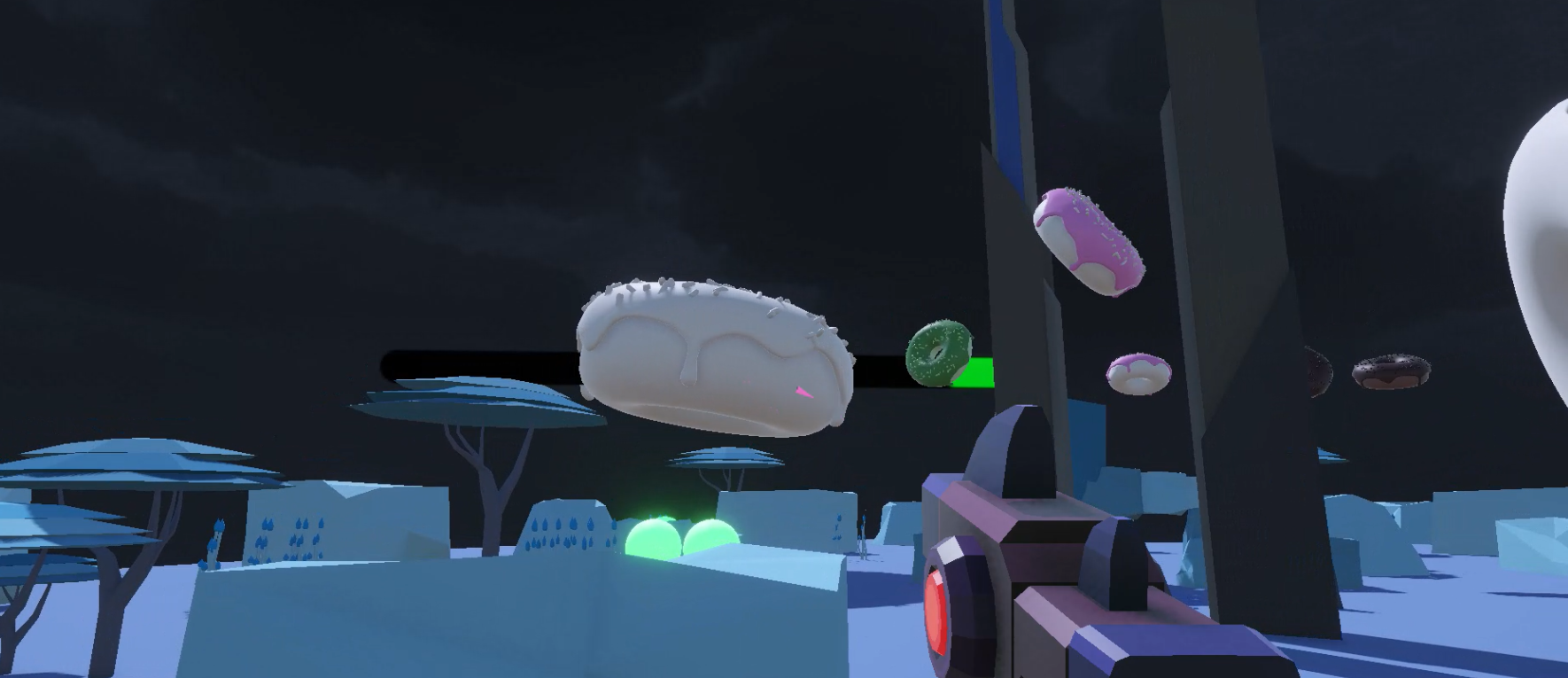 It's a nice environmental design, also the fit the vibes, the skybox also good. But if there any chance to improvement, maybe add some kind of juiciness when the donuts are killed, and somehow enemy projectiles seems very fast, I don't know if we can die or not. But yeah, nice game for solo dev.