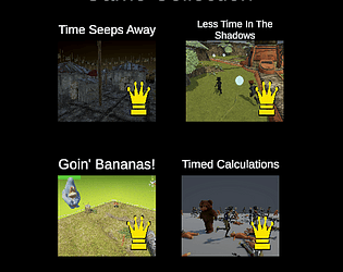 I did 3 out of 4 mini games. I didn't know what to do in Timed Calculations. I loved Less Time in shadows. At first i started following her, because I thought that she was a guide. Then she STOLE my first orb and I wanted to punch her, but could't. She is a lady after all. In time seeps away, maybe make the meat stand out a bit more. Overall great game jam game! If you have time, maybe invest a bit more in the orb collecting game, out of the four I enjoyed it most.