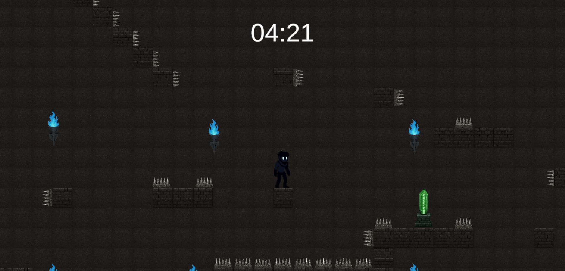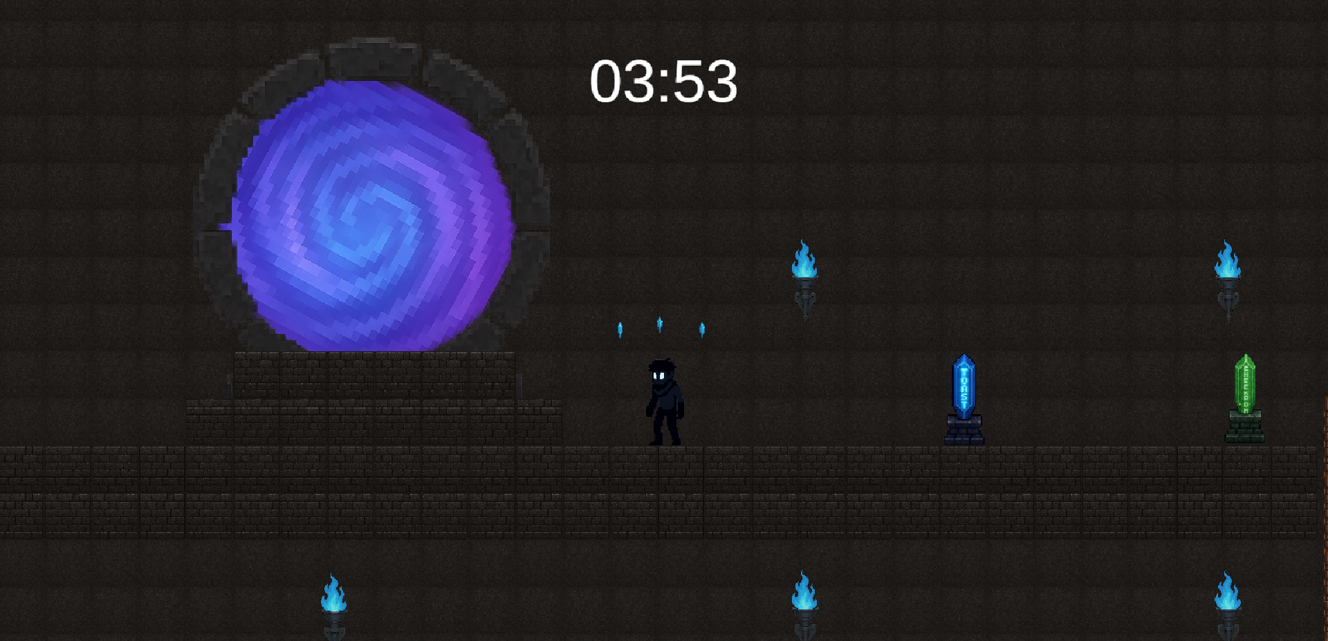 I really like the graphics and concept. I just couldn't get past this spot, the collider was tricky to figure out. At any rate. I still had fun trying to beat that clock. I think my game character lost 50 years just trying to earn 50 more though lol.