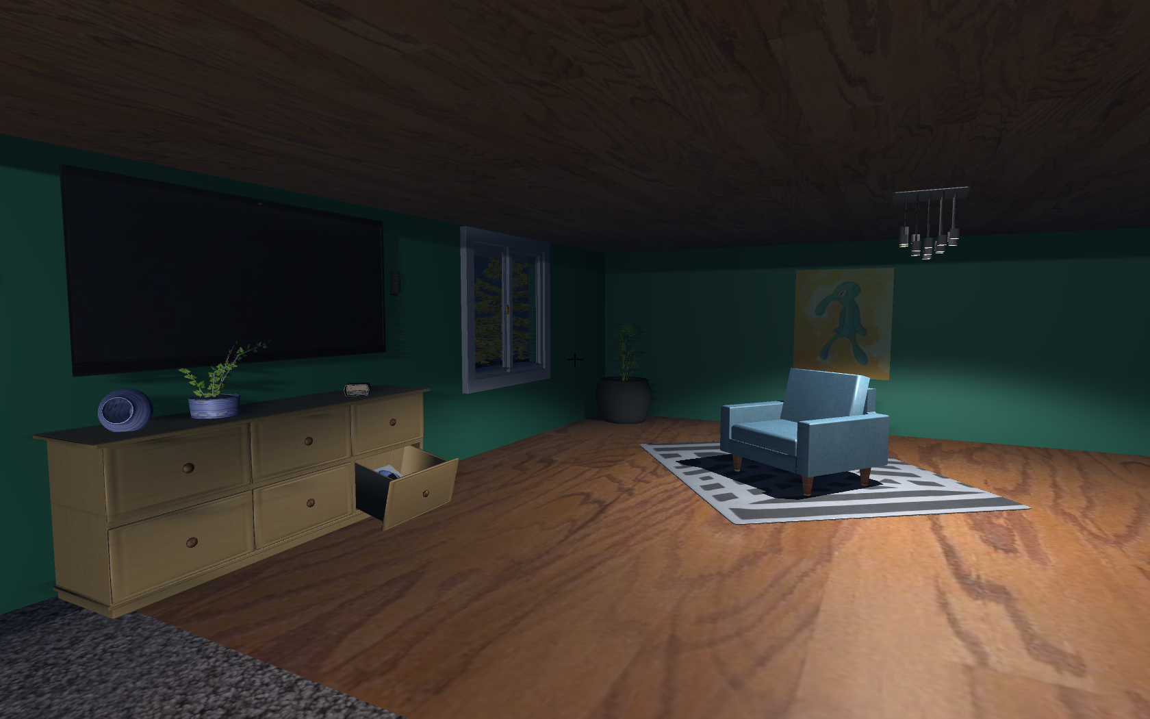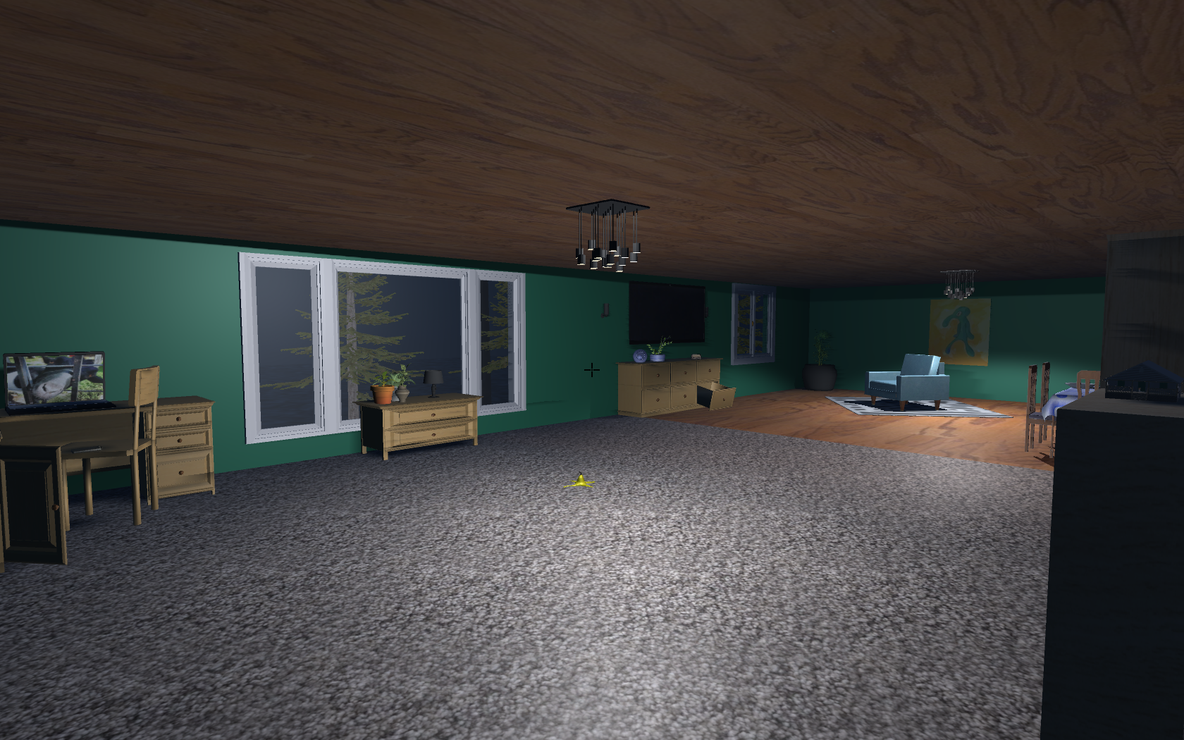 It looked really good even if it is scary. The footsteps sound was a good addition. I wasn’t able to open any of the doors and go into the rooms and get to the puzzles. I would like a video guide so I could explore this interesting creative entry more deeply.