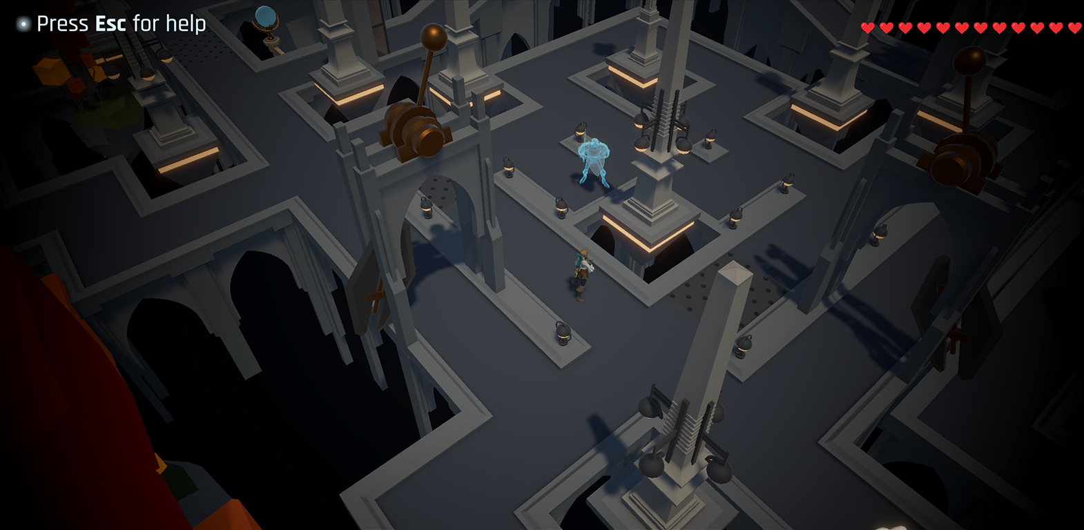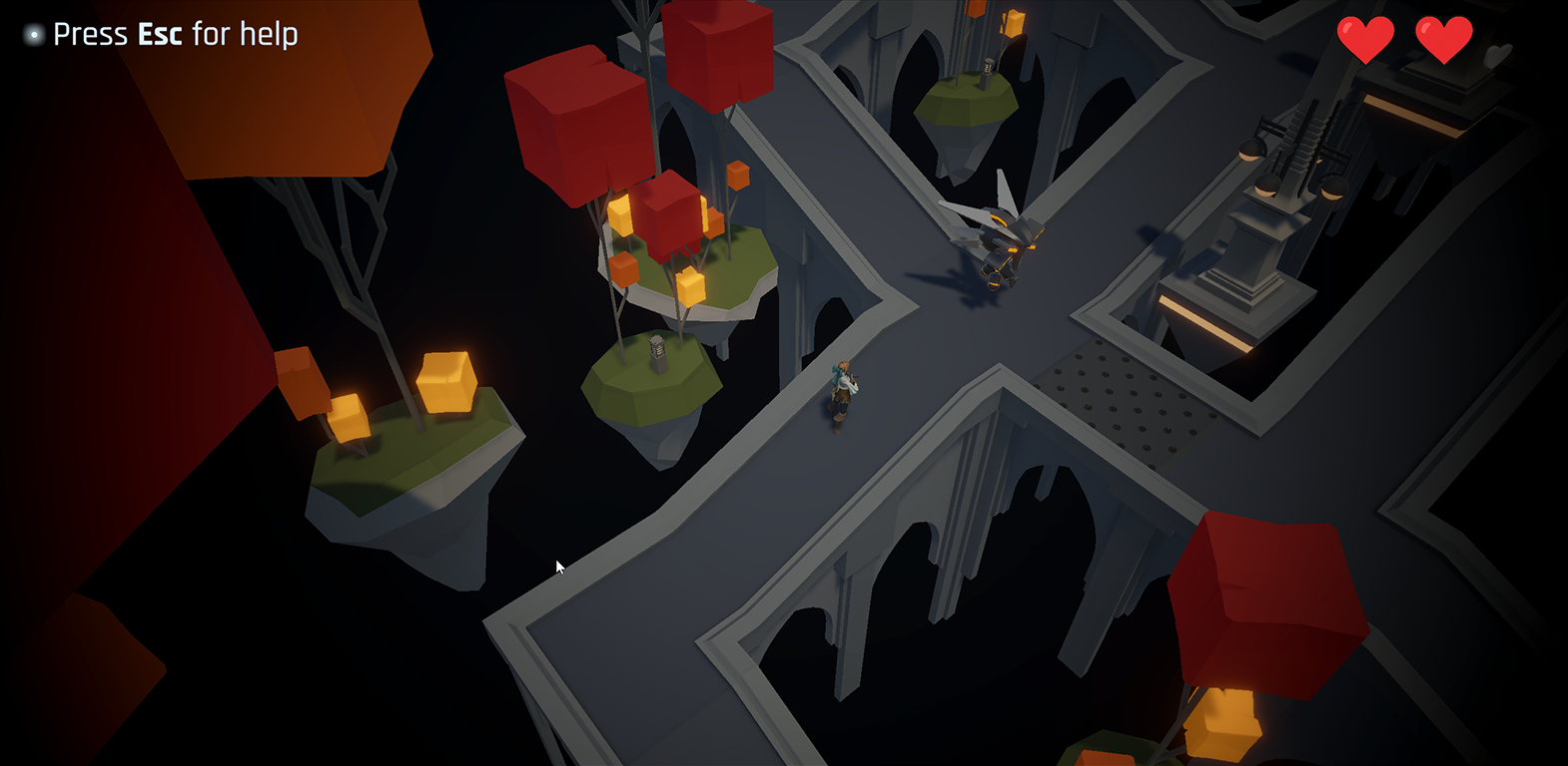 Not bad! Nice idea and labyrinth design, can be an interesting game with more mechanics and polish, most probably would work best as a puzzle. Two issues: shoot sounds are infinitely repeating (did you accidentaly enable Loop?), and movement direction is not relative to camera.