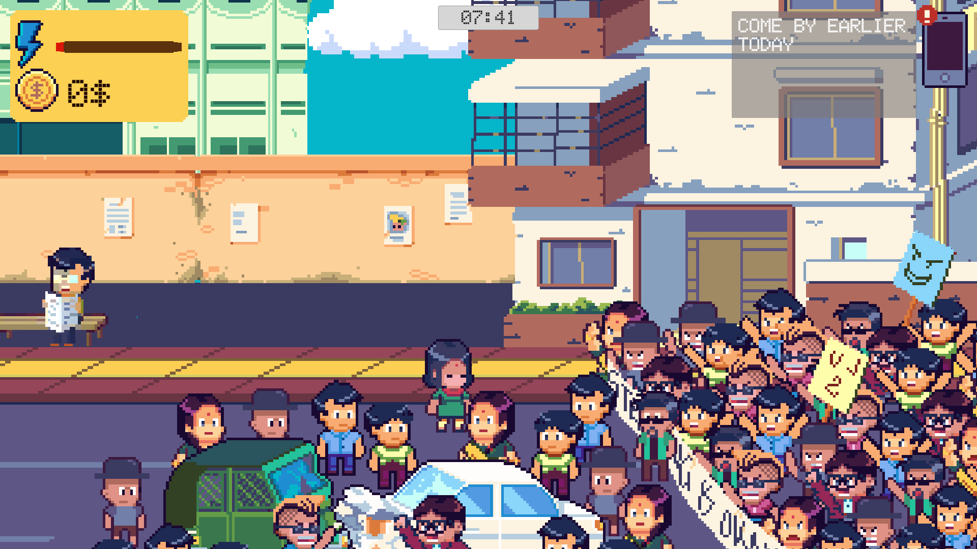 Lovely art! I made to the office in time but i passed through the border of the world instead. World is mad with many riots :D