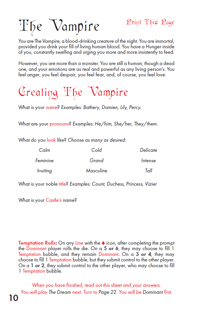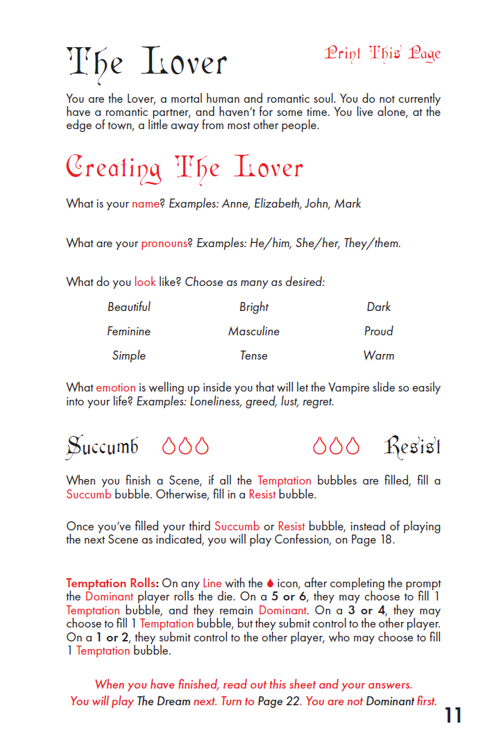 A 2-player game about a vampire, their would-be lover, and the tragedy of their love.