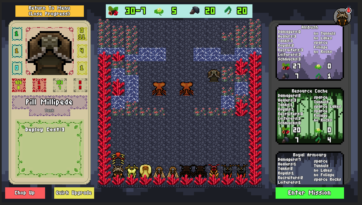 I don't know if I played it wrong but my critters just did nothing while they were getting massacred. Regardless of gameplay it seemed to be a well developed game with cool and interesting maps and insects.