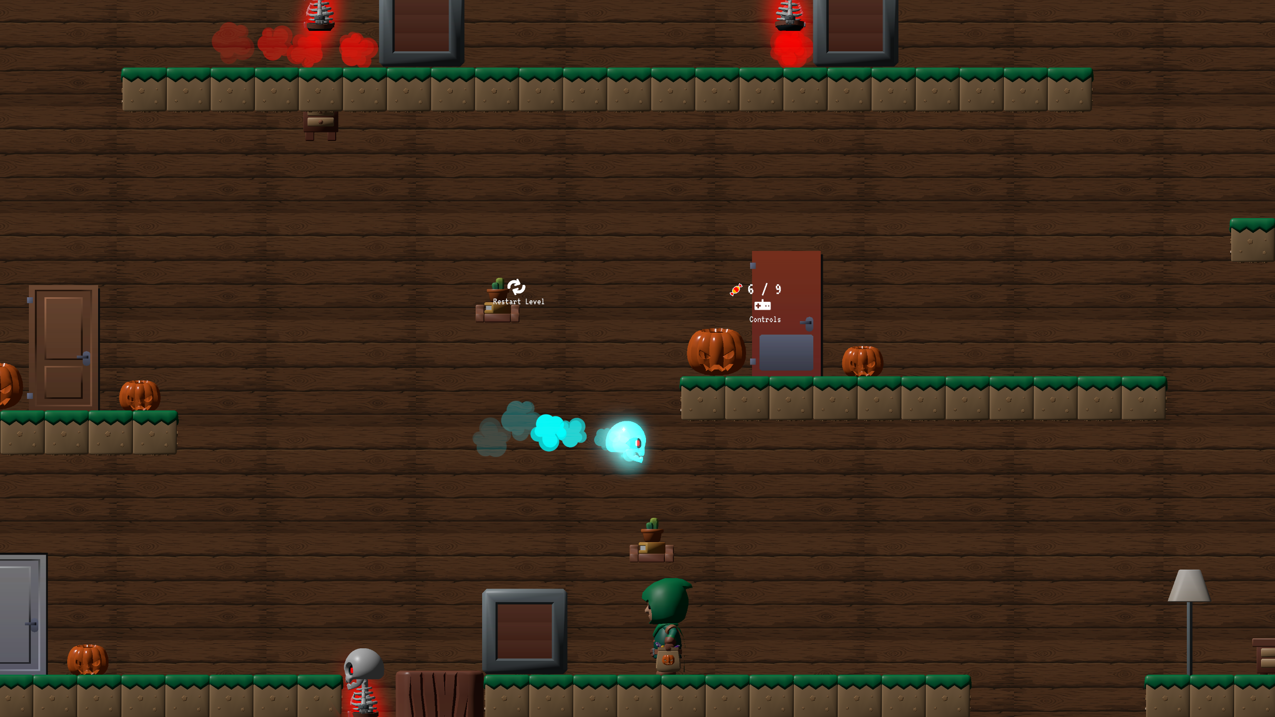 On Halloween night, the kid which player controls, goes for Trick n' Treat while avoiding ghosts. The environment is also autumn-y and Halloween!