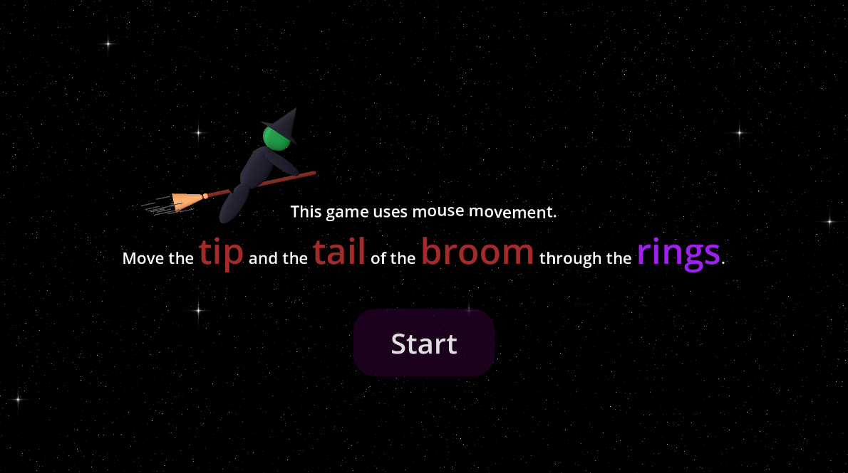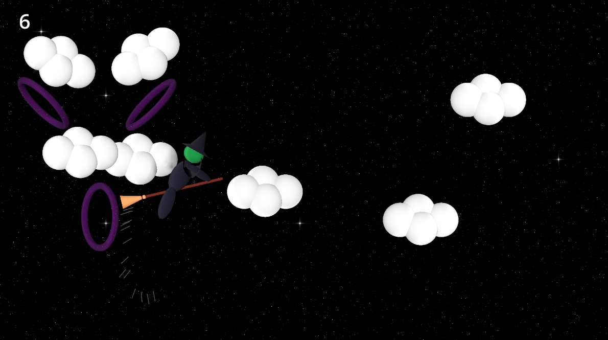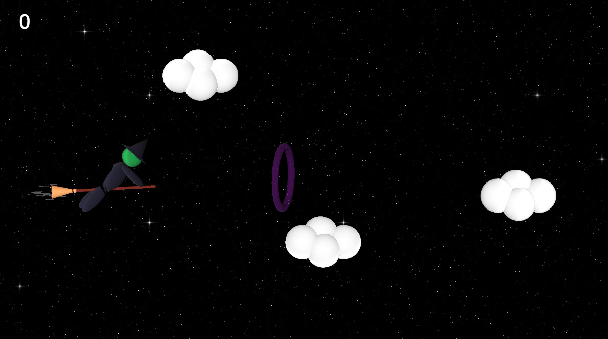 Fun! Asset choices were solid. It would have been nice to have some sort of collision on the ring itself? Lots of times when I went through the ring, but the end tail of the broom didn't register the right verticality or something.