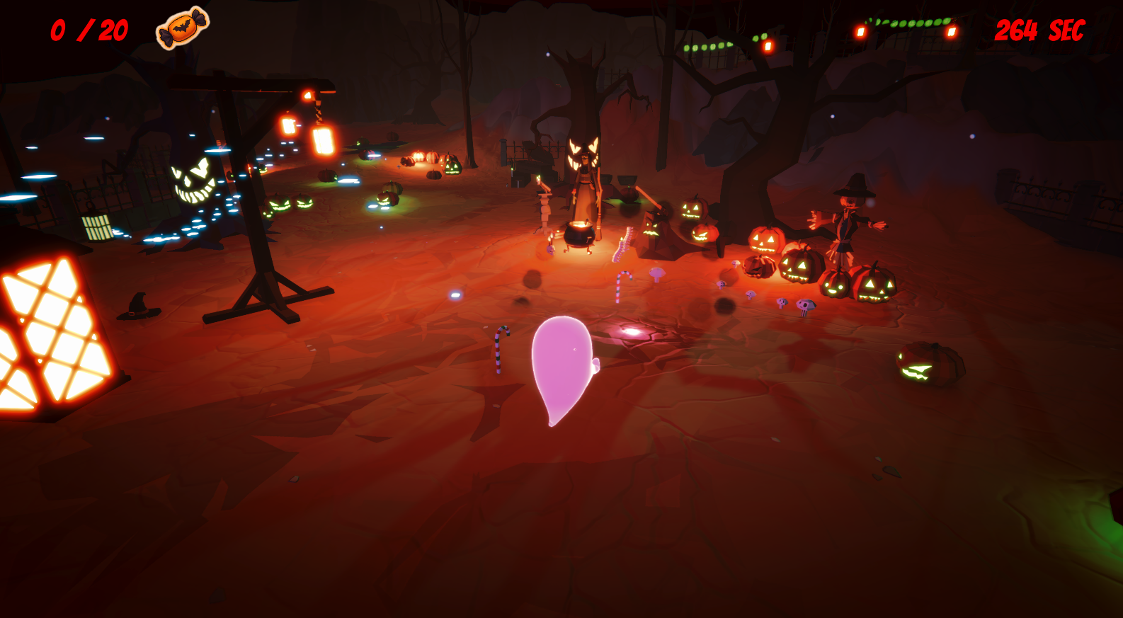 There were several issues where the pumpkins could clip through or around things, so that I couldn't get them or the candy they dropped.