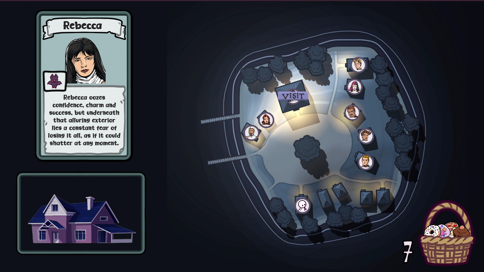 Thank you for persisting with playing it even though it reset every time you went back to the village screen! What I wanted to do is have it so that it takes time to visit each resident or grab treats so you have to try and manage your deck and give the right cards to the right people but of course I didn't have time to do all of that, it still needs much work!