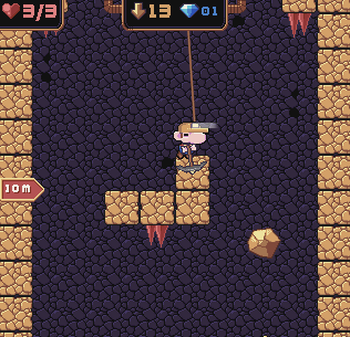 -My favorite part is the theme tie-in, having to go back up after you reach the bottom, while dodging enemies you didn't defeat on the way down and the spikes on the underside of platforms. And the wobblyness of the pickaxe/collected gem just help make the screen even more lively in-action.