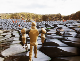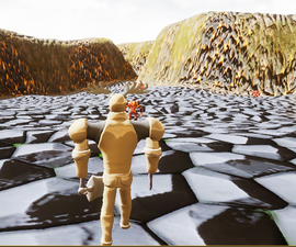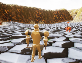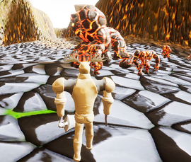 a game where you are a block and try to enter a volcano while killing enemy guarding the volcano and after entering the volcano you are on the edge of death and to get back your life, you need to kill enemy and get hearth supply you dropped...