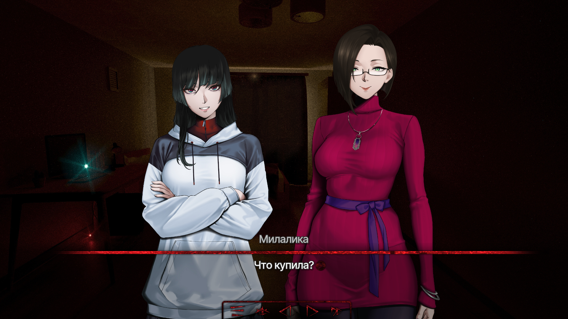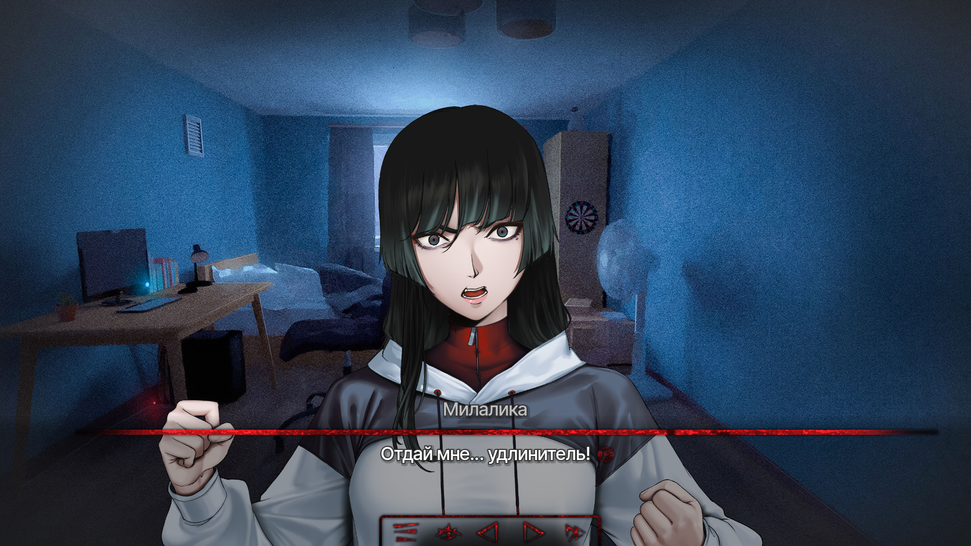 Штош, в целом повествование создало впечатление плавно накатывающей шизы и паранойи главного героя. Спрайты нарисованы очень аккуратно и выразительно. Фоны также на уровне. Крайне зашло решение накидывать БООООЛЬШЕ ГЛИТЧА на моменты, когда текст поворачивает в сторону шизотеорий и паранойи. Плавные переходы музыки также хочу отметить, звучит очень приятно, нет резких рывков смены музыкальной темы. Да и в целом музыка приятная.