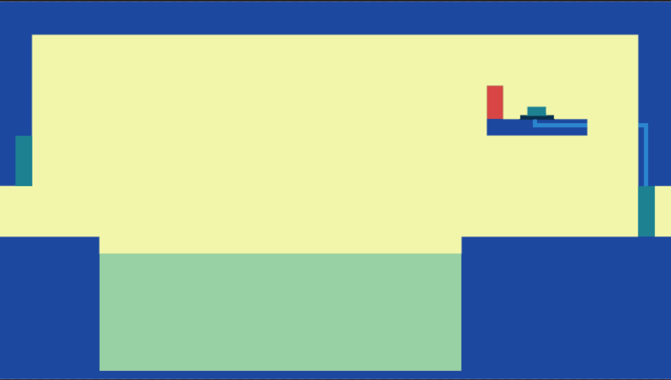 Some really nice colors. I appreciate the simple colors and the intricacy of dying standing or lying down. The menu for every time I died was a bit much. Quick suggestion for the color blind concern in another comment, try utilizing patterns or textures, like stripes or polkadots, to help differentiate the water from the level. Fun game :) Good job!