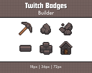 A set of 6 pixel art sub badges for Twitch streamers, building themed.