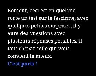 Une sorte de questionnaire pour savoir si vous êtes fasciste avec différentes questions en fonction de vos réponses.