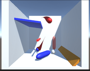A 3D red ball is falling down and interacting with other objects.