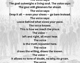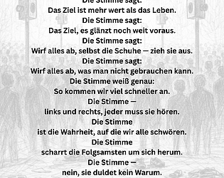 Die Stimme (2023) ist ein Gedicht über die Distanz zwischen denen, die fordern, und denen, die folgen.