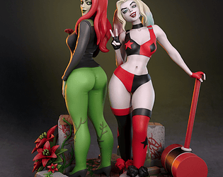 3D printable figure of Harley Quinn and Poison Ivy, from the Harley Quinn Show