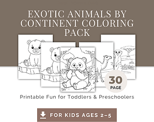 Exotic Animals by Continent Coloring Pack | Printable Fun for Toddlers & Preschoolers (Ages 2–5)