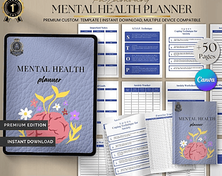 A 50+ page mental health planner with mood tracking, self-care prompts, and wellness tools. Personal use only.