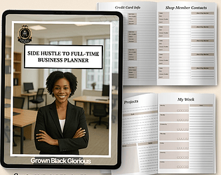 A digital business planner to grow your side hustle and plan your path to full-time success. Editable + PDF.