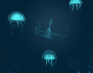 A forgotten crown drifting in the deep, rebuilt by the ocean with living glass and crystals.