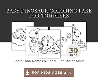 30 baby dinosaur coloring pages for toddlers! Fun printable pack to learn dino names and boost fine motor skills.
