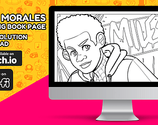 8.5x11 inch printable and digital coloring book page file of Miles Morales from Spider-Man: Into the Spider-Verse