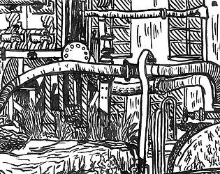 Sketch zine of industrial machinery in Wareamah/Cockatoo Island, Sydney.
