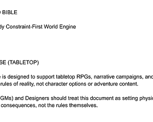 A constraint-first, system-agnostic worldbuilding framework for tabletop play.