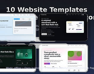 10 responsive HTML templates + offline no-code editor (JSON content). No build step.