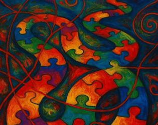 An abstract painting reflecting the puzzle of life and hidden paths.