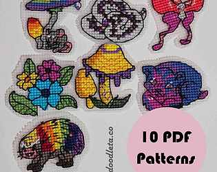 A set of cross stitch PDFs based on vector output from the now-public domain materials of Glitch The Game