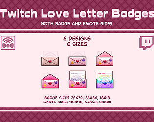 Six badge designs in six different sizes ready for Twitch.