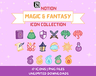 Fantasy writing icons to bring a little magic to your Notion or desktop.